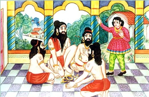 Young Ghanshyam saw this and became unhappy. He said to them, “Oh brothers! What are you doing even though you are Sadhus? It is a great sin to gamble.” “We are the disciples of a great teacher,” said the four Sadhus, “who are you to advise us?”